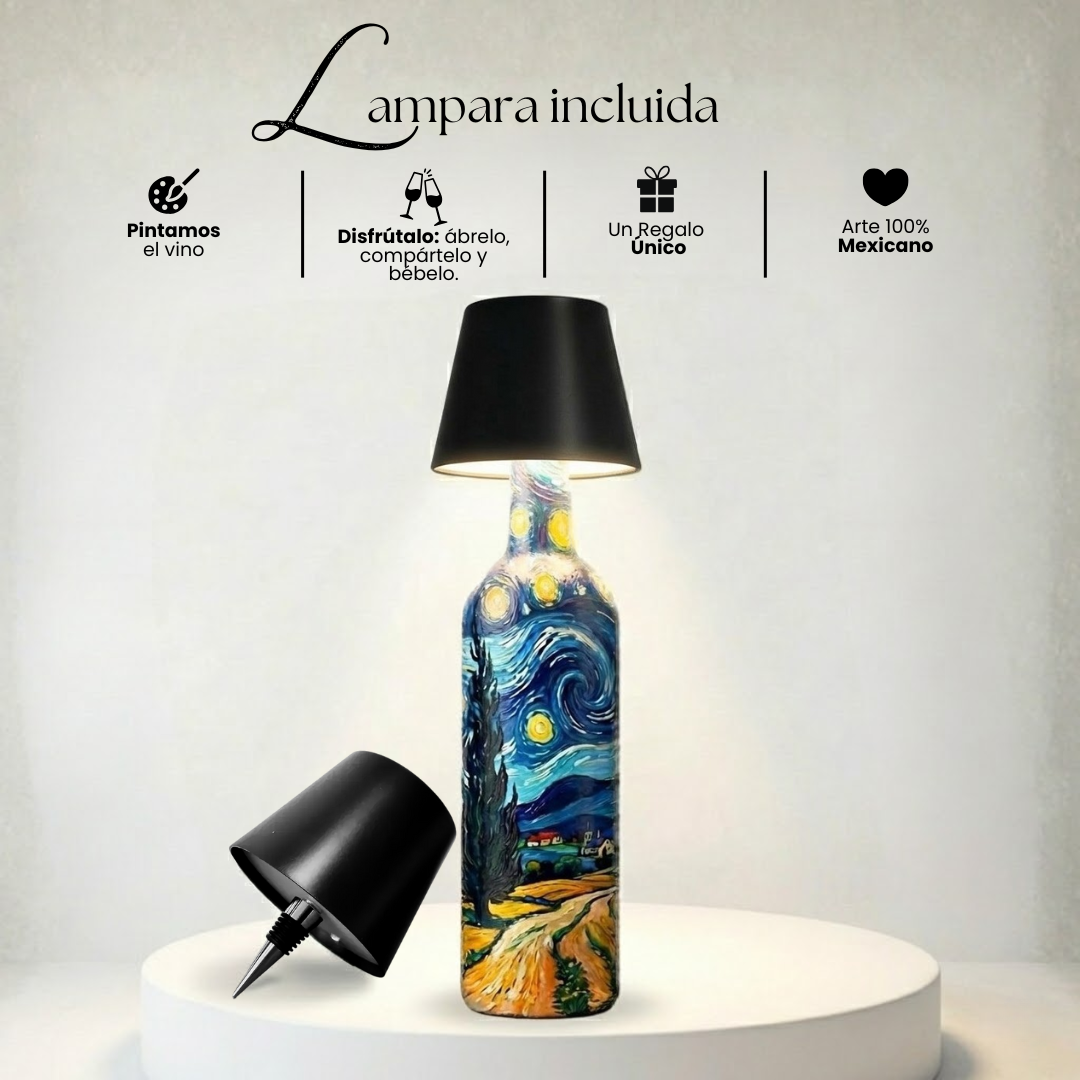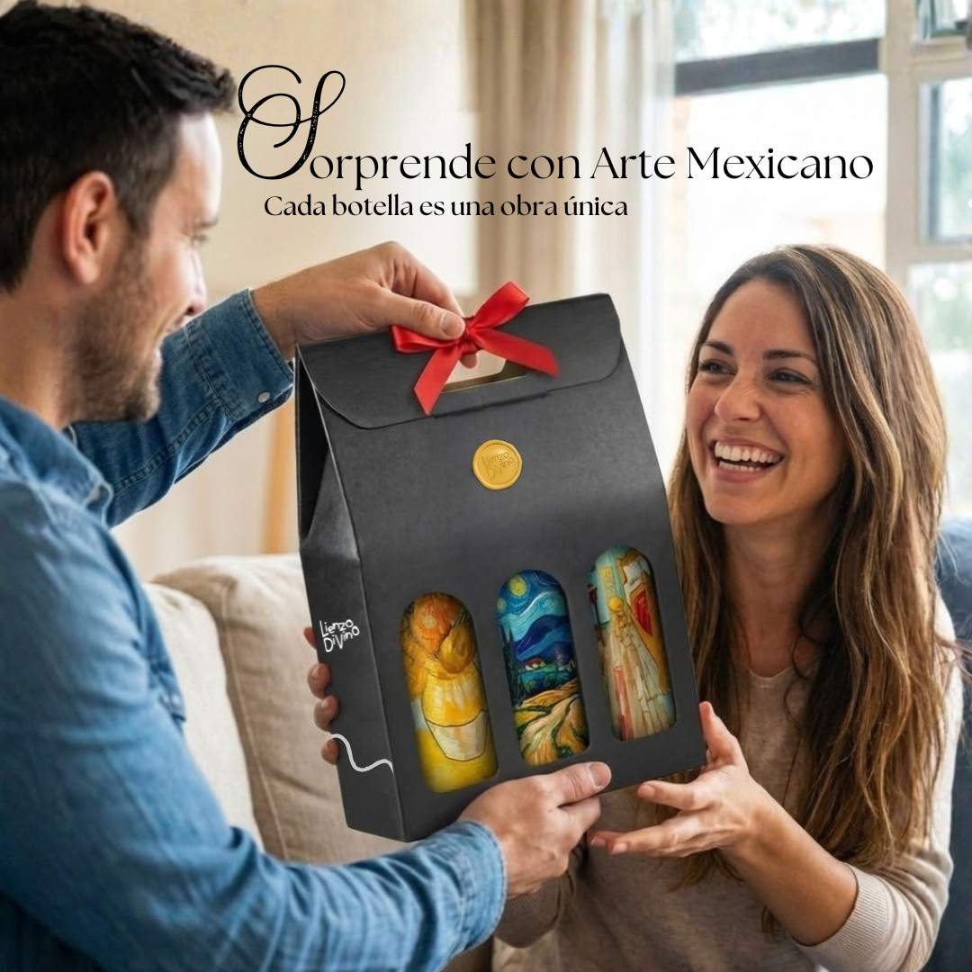 Vino de cosecha propia en Valle de Guadalupe y una botella pintada a mano por artistas Mexicanos, pensada para la persona que no merece “un regalo más”.