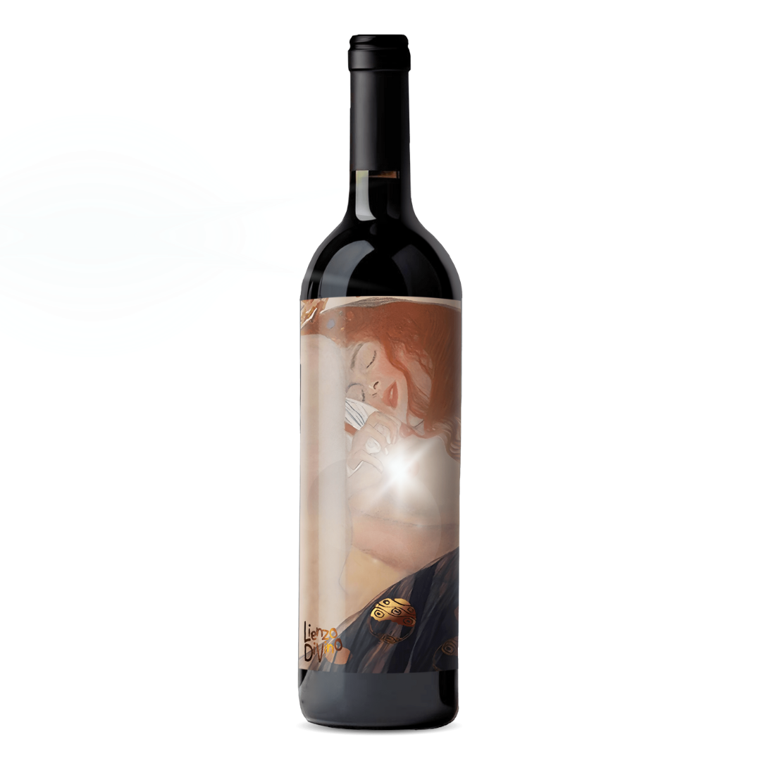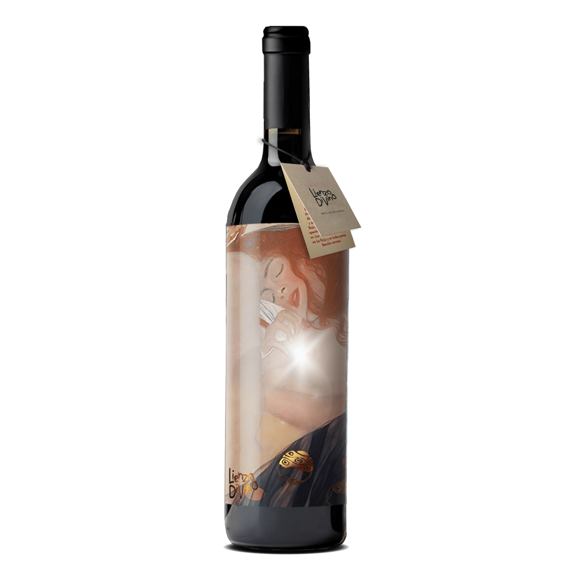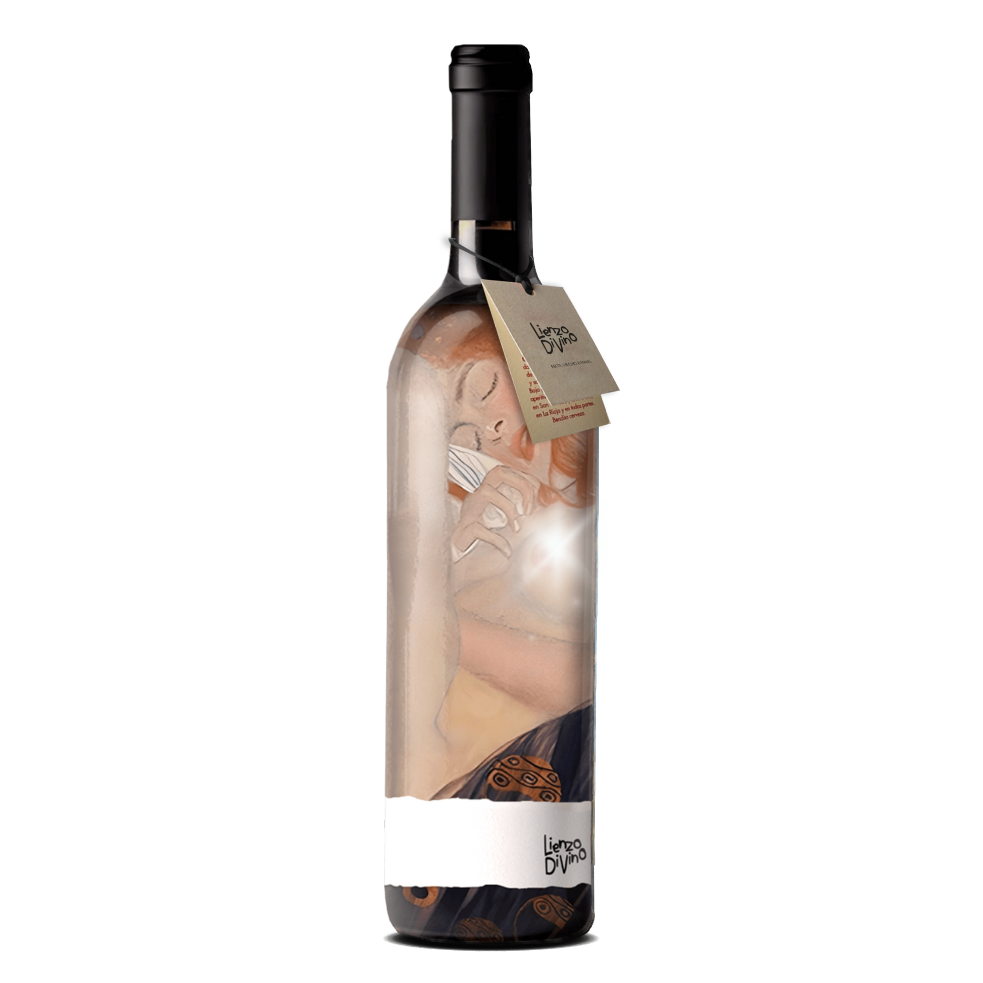 Con relieve al tacto, detalles dorados y textura de lienzo que viste tu vino
