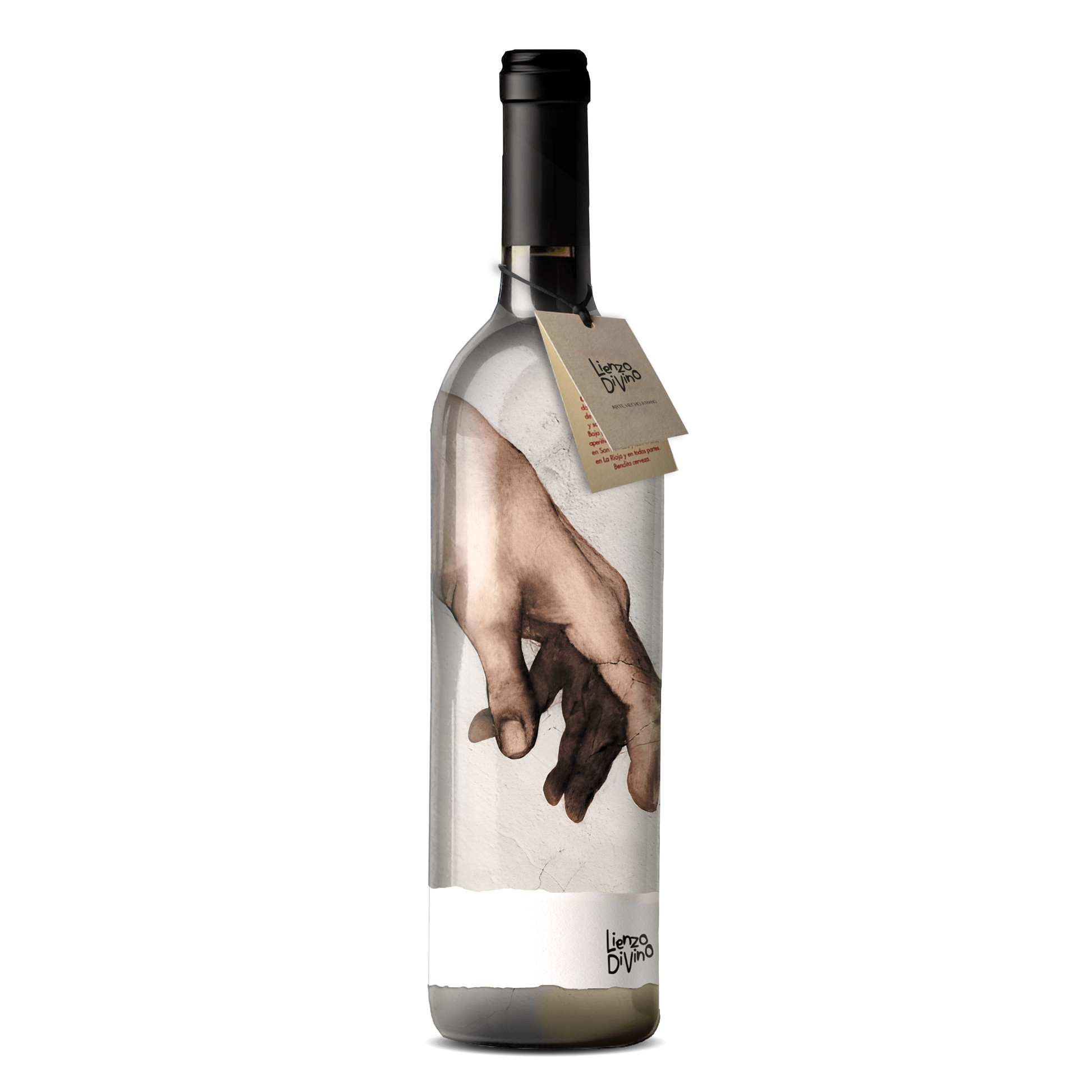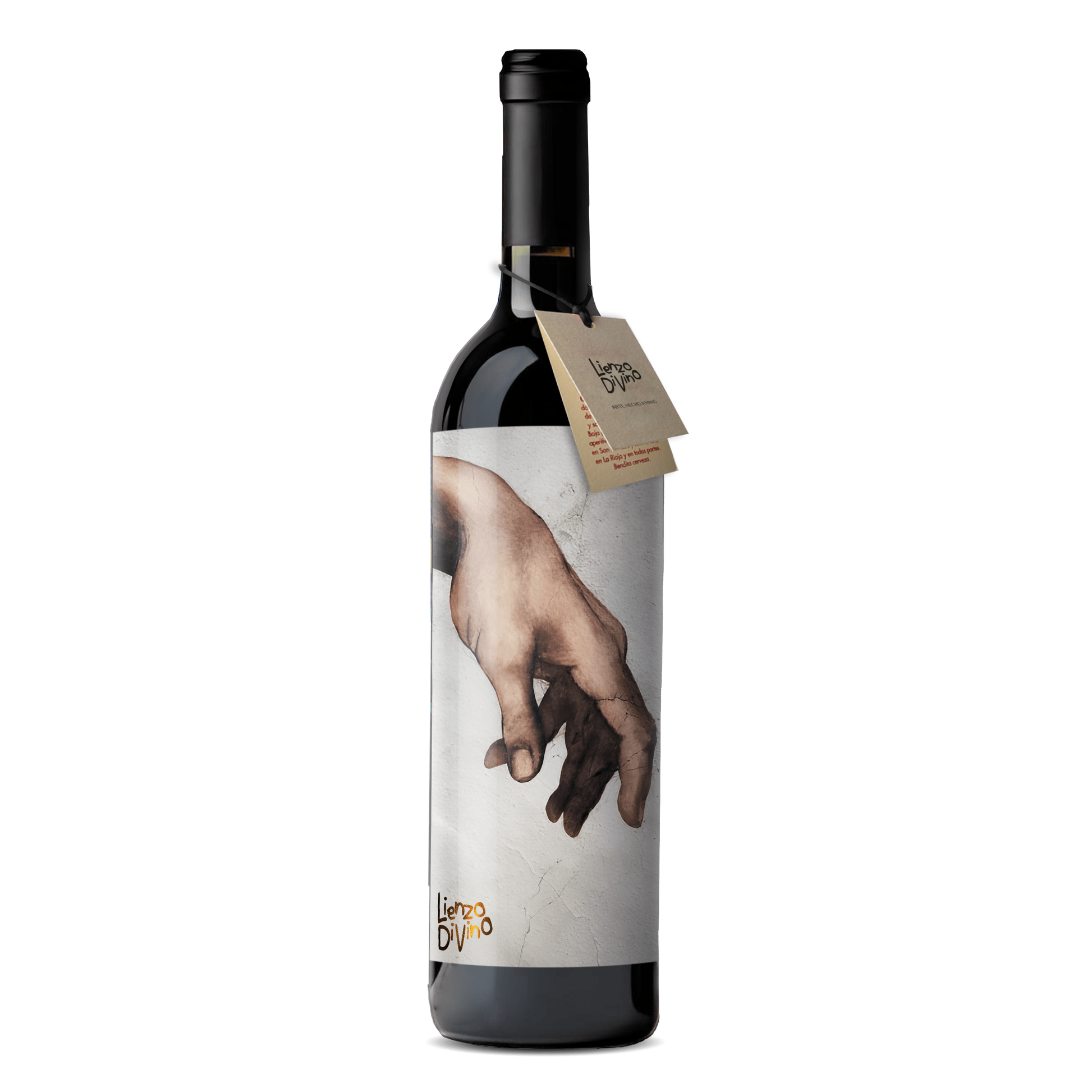 Con relieve al tacto, detalles dorados y textura de lienzo que viste tu vino