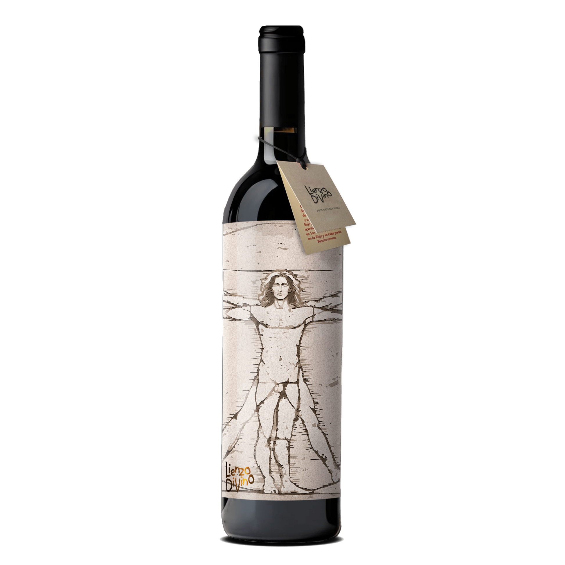Con relieve al tacto, detalles dorados y textura de lienzo que viste tu vino