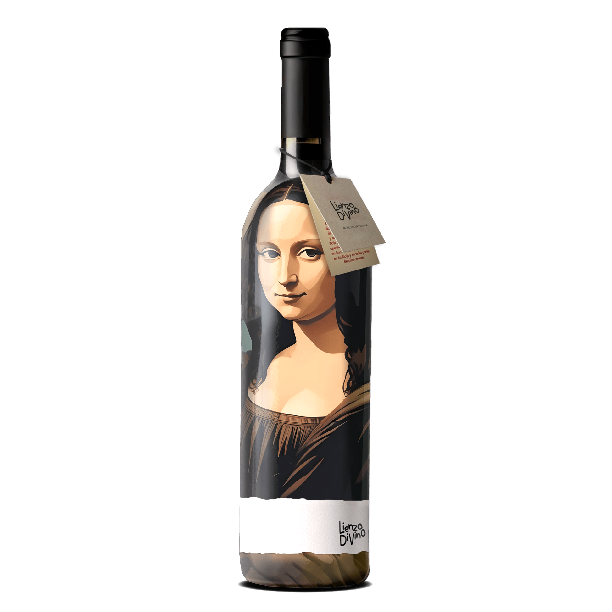 Con relieve al tacto, detalles dorados y textura de lienzo que viste tu vino