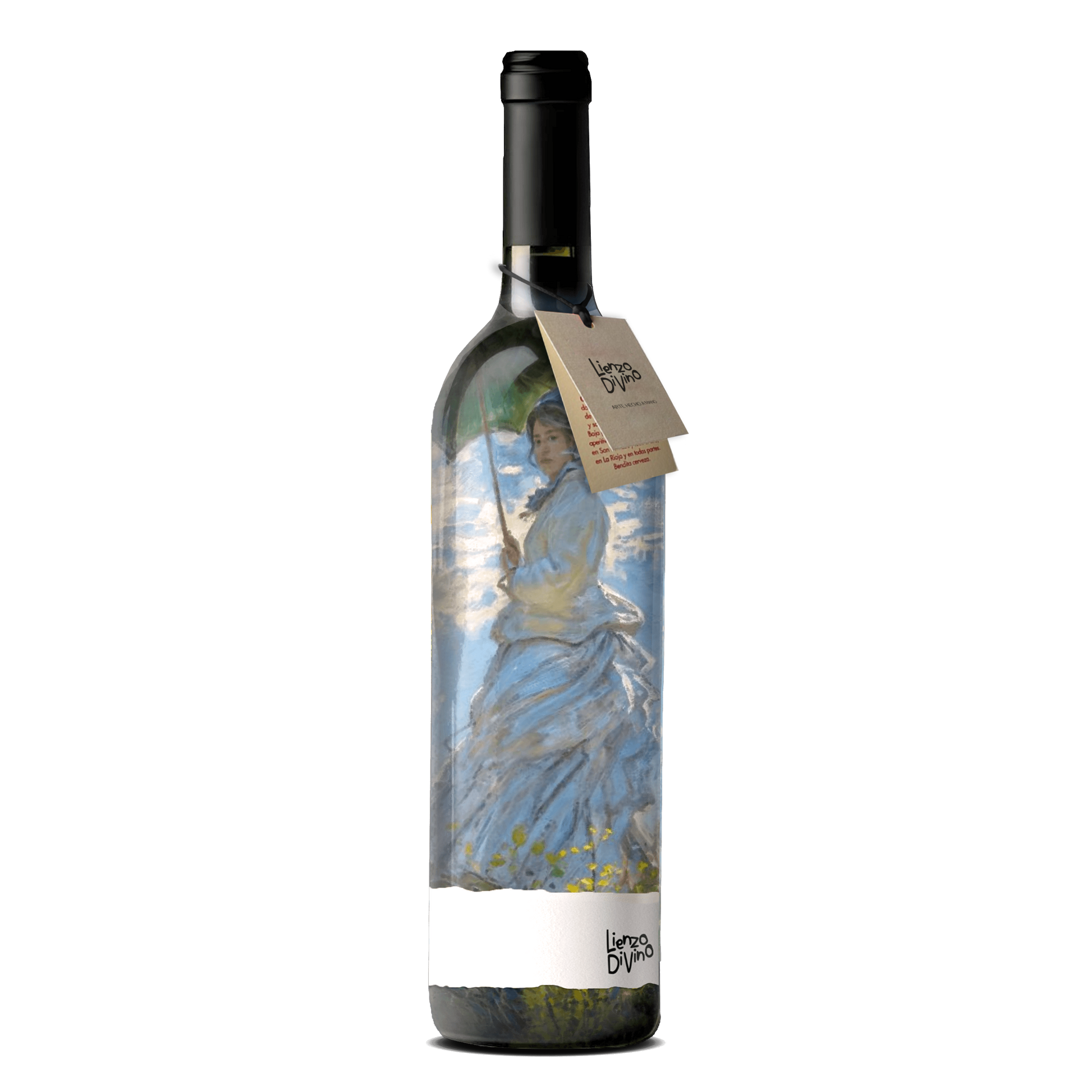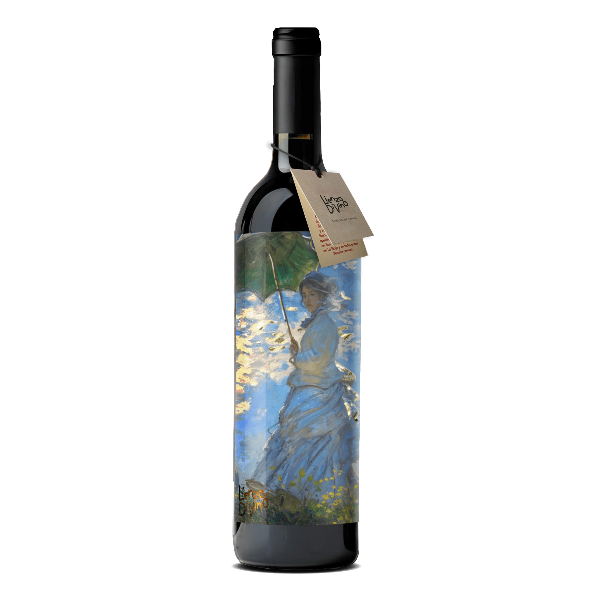 Con relieve al tacto, detalles dorados y textura de lienzo que viste tu vino