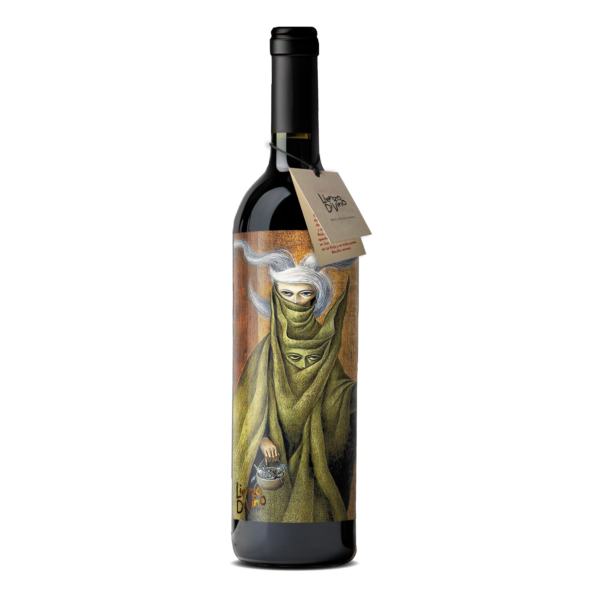 Con relieve al tacto, detalles dorados y textura de lienzo que viste tu vino