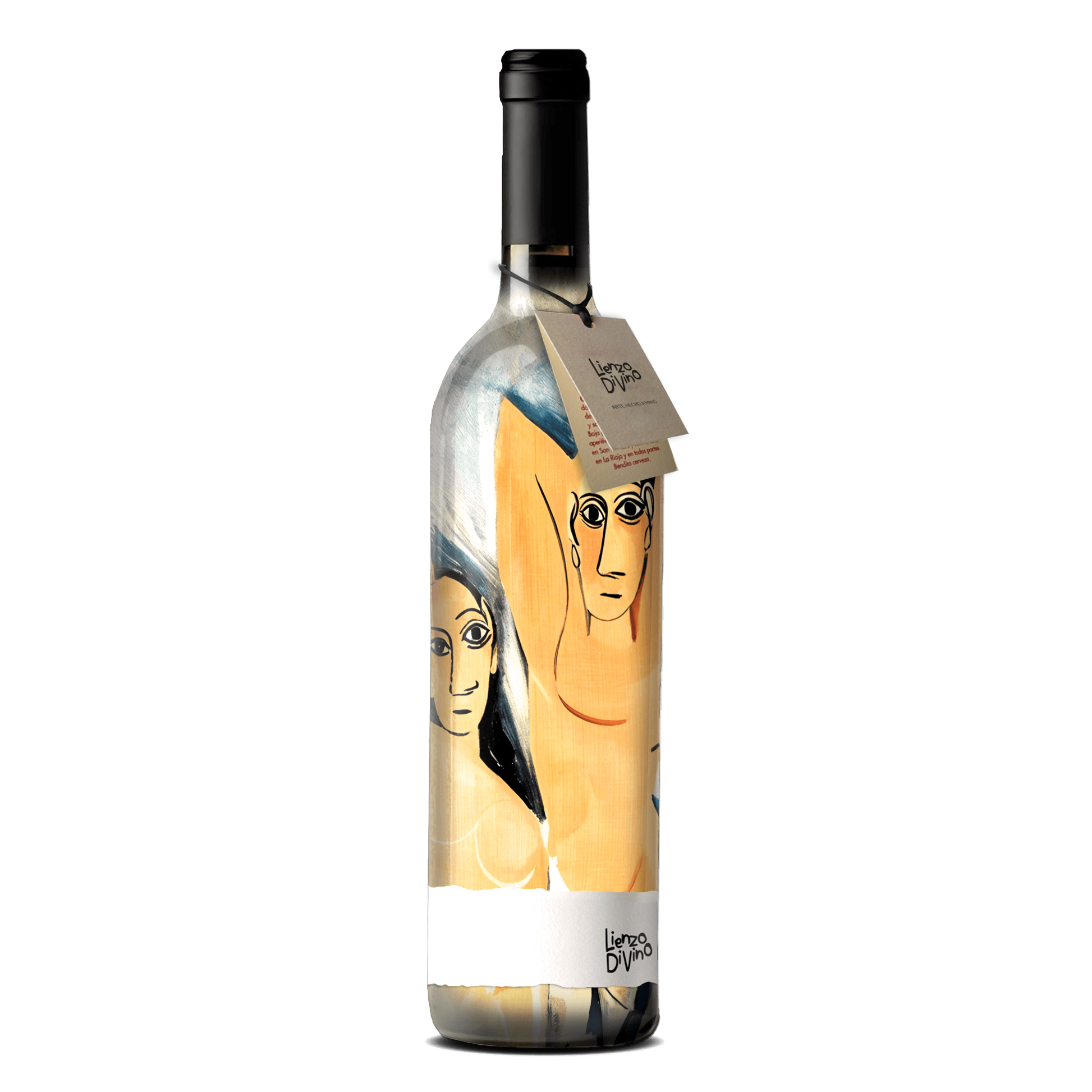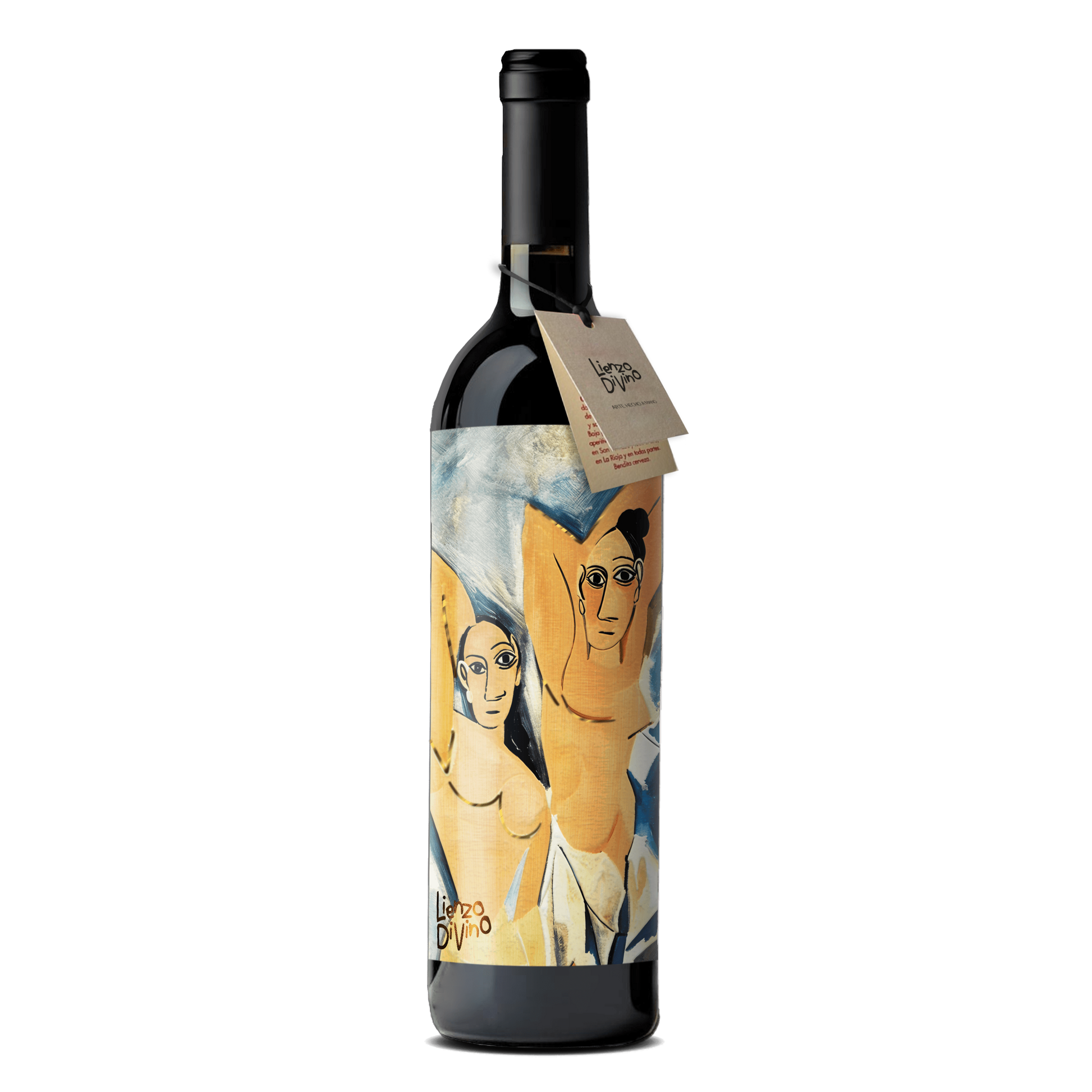 Con relieve al tacto, detalles dorados y textura de lienzo que viste tu vino
